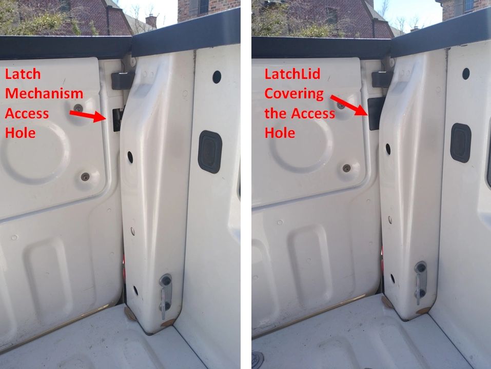 When the tailgate is closed, the latch mechanism is accessible through the access hole. Thieves can reach in the bed and using their finger or a screwdriver, flip the detent on the latches and unlock the tailgate.